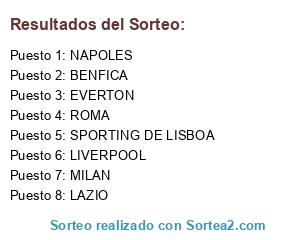 Lista de participantes: LIVERPOOL, NAPOLES, MILAN, BENFICA, ROMA, LAZIO, EVERTON, SPORTING DE LISBOA.