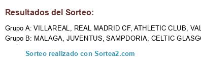 Lista de participantes: MALAGA, SAMPDORIA, CELTIC GLASGOW, VALENCIA, JUVENTUS, ATHLETIC CLUB, VILLAREAL, REAL MADRID CF.