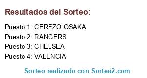 Lista de participantes: CEREZO OSAKA, CHELSEA, RANGERS, VALENCIA.