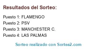 Lista de participantes: FLAMENGO, LAS PALMAS, PSV EINDHOVEN, MANCHESTER CITY.