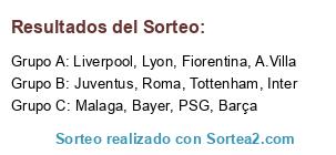 Lista de participantes: Inter, Barca, Bayer, Juventus, Tottenham, Roma, Fiorentina, A.Villa, Lyon, PSG, Malaga, Liverpool.