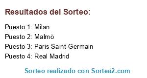 Lista de participantes: Paris Saint-Germain, Milan, Real Madrid, Malmö.