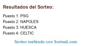 Lista de participantes: CELTIC, HUESCA, NAPOLES, PSG.