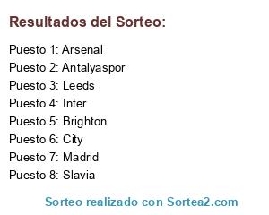 Lista de participantes: Antalyaspor, Madrid, City, Brighton, Arsenal, Inter, Slavia, Leeds.