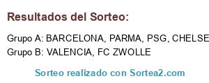 Lista de participantes: VALENCIA, PSG, CHELSEA, FC ZWOLLE, BARCELONA, PARMA.