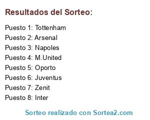 Lista de participantes: Napoles, Tottenham, Inter, M.United, Arsenal, Juventus, Zenit, Oporto.