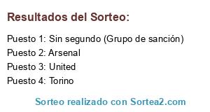 Lista de participantes: Sin segundo (Grupo de sanción), United, Arsenal, Torino.