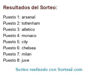 Lista de participantes: atletico, arsenal, city, tottenham, chelsea, monaco, juve, milan.