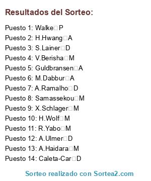 Lista de participantes: A.Haidara M, A.Ramalho D, A.Ulmer D, Caleta-Car D, Guldbransen A, H.Hwang A, H.Wolf M, M.Dabbur A, R.Yabo M, S.Lainer D, Samassekou M, V.Berisha M, Walke P, X.Schlager M.