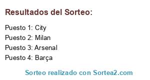 Lista de participantes: Arsenal, Borussia Dortmund, Barça, Madrid, City, Chelsea, Juventus, Napoli, Málaga, Leverkusen, PSG, Liverpool, Spurs, Inter, Milan, Swansea, Bayern, Manchester Utd, Newcastle, Atleti.