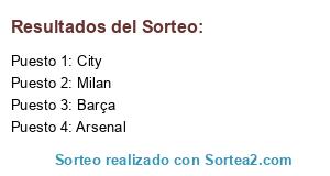Lista de participantes: City, Milan, Arsenal, Barça.