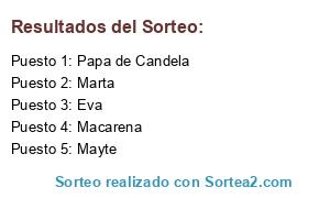 Lista de participantes: Papa de Candela, Eva, Mariluz, Marta, Macarena, Mayte, Paqui, Abuelo de Escarlata.