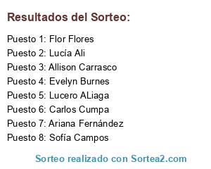 Lista de participantes: Lucía Ali, Lucero Aliaga, Evelyn Burnes, Sofía Campos, Allison Carrasco, Carlos Cumpa, Ariana Fernández, Flor Flores.