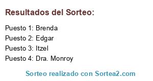 Lista de participantes: Itzel, Brenda, Edgar, Dra. Monroy.