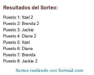 Lista de participantes: brenda, brenda 2, diana, diana 2, itzel, itzel 2, jackie, jackie 2.