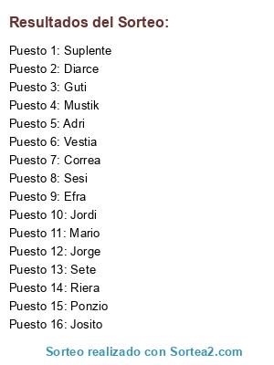 Resultados del sorteo: