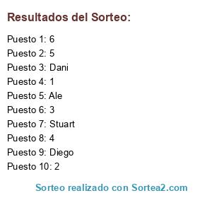 Lista de participantes: Diego, Ale, Stuart, Daniel, 1, 2, 3, 4, 5, 6.