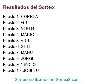 Lista de participantes: ADRI, JOSELU, MARIO, CORREA, SETE, JORGE, V3STI4, GUTI, MANU, YIYOLO.