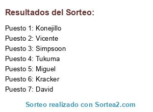 Lista de participantes: Konejillo, David, Vicente, Kracker, Simpsoon, Tukuma, Miguel.
