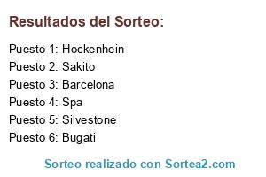 Lista de participantes: Sakito, Bugati, Barcelona, Silvestone, Hockenhein, Spa.