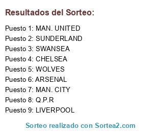 Lista de participantes: CHELSEA, SWANSEA, ARSENAL, LIVERPOOL, WOLVES, SUNDERLAND, Q.P.R, MAN. CITY, MAN. UNITED.