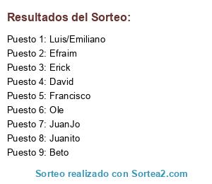 Resultados del sorteo: