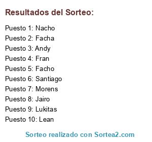 Lista de participantes: Andy, Nacho, Facho, Fran, Lean, Facha, Morens, Jairo, Santiago, Lukitas.