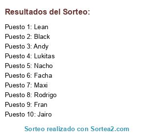 Lista de participantes: Andy, Facha, Fran, Black, Jairo, Lean, Lukitas, Nacho, Maxi, Rodrigo.