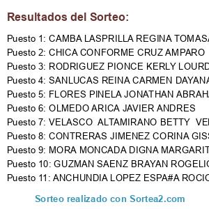 Lista de participantes: SOLEDISPA SOLIS FLORA ISABEL Eq1, VELIZ CASTRO YULI IRALDA Eq1, SANCHEZ COLOMBIA Eq1, ARREAGA NARVAEZ KEVIN JESUS Eq1, JUMBO SUAREZ CAROLINA ESTEFANIA Eq1, MALDONADO SUAREZ OLIVIA TARGELIA Eq1, ROCAFUERTE CAICEDO DAYCIDEER ALEXANDRA Eq1, SALAZAR RODRIGUEZ NORIS MARITZA Eq1, TANDAZO CANDELARIO DAYANNA NICOLE Eq1, CONSTANTE VERGARA MARIA JOSE Eq1, RODRIGUEZ PIONCE KERLY LOURDES Eq1, CALDERON PINCAY DOLORES ELIZABETH Eq2, GUARIN MENDOZA ESTHER Eq2, MORAN SOLEDISPA FREDDY Eq2, CEVALLOS NARCISA Eq2, AGUILAR QUINTU#A REINA PRISCILA Eq2, GUILLEN DE MARCHI LIM JOSE Eq2, AVILA GUERRERO LILIANA MARITZA Eq2, ARMIJOS MOSQUERA LEIDY MARISOL Eq2, VERA SANCAN COLOMBIA AMPARO Eq2, LUCAS TOALA MAYIYE MARITZA Eq2, RACINES MOROCHO ESTHELA ALEXANDRA Eq2, VARGAS CARBAJAL MAYRA ALEJANDRA Eq2, ALBAN GARCIA GRACIELA DEL CARMEN Eq2, CAMPOVERDE BRAVO MAYRA ALEXANDRA Eq2, PIGUAVE CARDENAS SANDRA JANET Eq2, CHOEZ RODRIGUEZ LEONELA PILAR Eq3, RAMIREZ SOLORZANO ALBA DE JESUS Eq3, LOPEZ ACOSTA GLORIA ESPERANZA Eq3, MEJIA MORA NORMA ISABEL Eq3, MINAYA MINAYA ROSARIO MERCEDES Eq3, AUZ ZAMBRANO VIOLETA DIOSELINA Eq3, RODRIGUEZ VILLEGAS MARTHA CECILIA Eq3, LINO HERNANDEZ JOSSELINE STEFANIA Eq3, RAMOS VERA BAYAN ALEXANDER Eq3, LEON AGUILERA BLANCA IRENE Eq3, PACHECO ANA MA. Eq3, MEJIA DELGADO MELISSA DEL ROCIO Eq3, ANCHUNDIA ANCHUNDIA SOLANGE MARIELA Eq3, MORA ALAVA ELBA ENRIQUETA Eq4, ZAMBRANO BUSTAMANTE SULLY MABEL Eq4, LITARDO MU#OZ PETRA MARIA Eq4, RODRIGUEZ ESPINOSA MARIA VICTORIA Eq4, ASTUDILLO VELEZ SILVIA VERONICA Eq4, DUMES AGUIRRE DANIEL HOOVER Eq4, MERCHAN SANCHEZ LUIS JOSE Eq4, MIJARES MORA JOHANA ALEJANDRA Eq4, MANDUJANO CAAMA#O GISELA FATIMA Eq4, CANDELARIO CASTRO LUCIA EDILMA Eq4, VITERI BRIONES ROSA ELVIRA Eq4, ESPINOZA CHERREZ ANDREA XIMENA Eq4, COLMONT MONCAYO MARIA AUXILIADORA Eq4, VALENZUELA RAMIREZ LETICIA KATALINA Eq4, LUNA HARO MONICA ALEXANDRA Eq4, MONTENEGRO PENAFIEL JOSSELIN MARIA Eq4, LUNA HARO KEVIN ANDRES Eq4, ROJAS MACIAS JULIO ALEJANDRO Eq4, VELOZ CARPIO BLANCA MATILDE Eq4, JIJON LEON JESUS DAVID Eq5, VILLAVICENCIO ZU#IGA NEILA YARIXA Eq5, MACIAS COELLO ROSA LEONOR Eq5, OLMEDO ARICA JAVIER ANDRES Eq5, TUTIVEN PATRICIA Eq5, CORONEL VERA ANIBAL LORENZO Eq5, MOROCHO YUMBO MARIA ELENA Eq5, NAVARRETE BOSSO SHELOMIT ALEJANDRA Eq5, SALGADO CABEZAS MARIA DEL PILAR Eq5, ALVEAR GLADYS Eq5, BURGOS POZO ERIKA ANGELINA Eq5, SALCEDO HURTADO JUAGRITH ELENA Eq5, MOLINA PENA ANA DEL ROCIO Eq5, MACIAS ESCALANTE GILDA AMADA Eq5, BURY MOLINA ROSA LASTENIA Eq5, YEPEZ LINO MARIA AGUSTINA Eq5, CAMPI MAYORGA ELVIRA ALEJANDRA Eq5, VARGAS ALAVA CHRISTIAN RENE Eq5, FIGUEROA ESTRADA ADRIANA BELEN Eq5, NAVARRETE BOSSO GIDDALTI AIDA Eq5, LOMAS CONSTANTE FANNY ANGELICA Eq5, MACIAS ALVEAR LUIS XAVIER Eq5, LEON BARQUET WENDY EVELYN Eq5, LOOR MERA MAURICIO EFREN Eq5, HATO CASTRO JESUS MAURICIO Eq5, CAMACHO JIMENEZ CARMEN ROSA Eq5, JARAMILLO AVILES MARIA OLIMPIA Eq5, ESTUPI#AN BAILON GENESIS ALICIA Eq5, QUINTU#A SUAREZ JUANA MARGARITA Eq5, QUINTU#A CHIRIGUAYA ALISON LISSETT Eq5, SANDOYA SALAZAR KERLY MELISSA Eq5, ROCANA PANCHI KATHERINE MISHELL Eq5, FIERRO NANCY ROCIO Eq5, GARCIA GARZON MABEL ALEXANDRA Eq5, ACOSTA VERA JASMIN MARIELEN Eq5, BOMBON PEREZ BLANCA HERMINIA Eq6, PIGNATARO ECHANIQUE LUCIA MARIA Eq6, PEREZ PEREZ ISABEL MARIA Eq6, ESCALANTE ROMERO SILVIA CAROLINA Eq6, JARAMILLO RAMIREZ FREDDY OLANA Eq6, FIGUEROA CANO WILLIAN YUSETH Eq6, CABANILLA TOMALA ANTONIA SARA Eq7, URRESTA PASTORIZA GLENDA CRISTINA Eq7, LA MOTA BARBERAN GLENDA PATRICIA Eq7, MORA ZAPATER JANETH LETICIA Eq7, REYES REYES ANGEL DISIFREDO Eq7, MACIAS MOROCHO ANTONELLA GINGER Eq7, AGUIRRE AGUIRRE MARIA DOLORES Eq7, RUIZ LOPEZ CRISTINA VIOLETA Eq7, TOMALA GARCIA FRANCISCO RONY Eq7, MATUTE ACURIO ANDREA CRISTINA Eq7, MOSQUERA JIMENEZ MIGUEL ANGEL Eq7, PULGARIN GUILINDRO HEYDY YARITZA Eq7, REYES MOREIRA CORAIMA MICAELA Eq7, PIN SUAREZ ARELYS AURA Eq7, SANTANA DEL VALLE CRUZ MARIA Eq7, ARIAS MOLINA DOMENICA CECILIA Eq7, MORA ZAPATA CARLOS ESTEBAN Eq7, GUZMAN PIEDRA MORAYMA MARIBEL Eq7, GOMEZ SUAREZ GENESIS LISSETTE Eq7, VARGAS MU#IZ DIANA GENESIS Eq7, NAVARRETE SANCHEZ MARTIN OSWALDO Eq7, FAJARDO CORDOVA MARITZA ROCIO Eq7, VIVERO MEDRANO GLADYS VERONICA Eq7, MEJIA MEDINA ADELINA MARIBEL Eq7, GUTIERREZ MEJIA MARIA NICOLE Eq7, ROMAN CIRSTINA AGRIPINA Eq8, LETERNEUR ALAVA ALEJANDRINA HERMINIA Eq8, MORA ADELINA Eq8, PEREZ RAMOS MARIA DEL ROCIO Eq8, BRITO AVILA ELSA NARCISA Eq8, ROSADO ALAVA MARIA ISABEL Eq8, REYES PINCAY VERONICA MARGARITA Eq8, ROCHA LEON PATRICIA DEL ROCIO Eq8, CEDENO CHILAN JERSY ANDRES Eq8, POTES LETURNE NORMA CECIBEL Eq8, SUAREZ MERCY Eq8, PIZA VILLEGAS JONATHAN MANUEL Eq8, BAQUE JUBAY PABLO ROBERTO Eq8, CEDE#O ROSADO MERY BEATRIZ Eq8, BARCIA QUIJIJE SIMON ANGEL Eq8, MALDONADO COELLO JULIO ANTONIO Eq8, GARCIA LETURNEUR BRYAN ANTHONY Eq8, PLAZA CERVANTES ESTHER GARDENIA Eq8, CAICEDO BAJA#A JONATHAN ISMAEL Eq8, VELEZ POTES MARIA DEL ROCIO Eq8, CERCADO MERA CRISTHIAN JAVIER Eq8, SOSA SALAZAR MARIA YANIRA Eq8, RIVERA LUCAS JACQUELINE DEL ROSARIO Eq8, PINCAY MU#IZ JENNIFFER JOHANNA Eq8, CEREZO ESMERALDAS JISSELA JESSENIA Eq8, ASPIAZU FRANCO FELISA MARGARITA Eq9, CULQUI GUAMAN ZOILA ESPERANZA Eq9, PILOZO CORREA HARRY LEOPOLDO Eq9, JOSE VILLON JAVIER RIGOBERTO Eq9, BONILLA PLUAS PAULA MIRELLA Eq9, ROBAYO VEINTIMILLA GINA SUSANA Eq9, OROVIO RIVERA EVELYN YULADY Eq9, LAURI ALBAN DANIELA IVANNA Eq9, PACHECO SANCHEZ MARIA VERONICA Eq10, SALAS FRANCISCA Eq10, BAQUE BAQUE ESTEFANIA FABIOLA Eq10, GAVILANES MOSQUERA JENNY ELIZABETH Eq10, CHAVEZ BERMUDEZ PEDRO FLORENCIO Eq10, DOMINGUEZ BAQUE NORMA NARCISA Eq10, FLORES RIVAS MERCEDES Eq10, ALAY GONZALEZ ANDREA ARACELY Eq10, TIGUA BAQUE ROSA MERCEDES Eq10, TRIANA CASTRO DANIEL JOSE Eq10, CONTRERAS JIMENEZ CORINA GISSELLA Eq10, TOALA REYES HERVELINDA MONSERRATE Eq10, MALDONADO AURELIA JACINTA Eq10, SUAREZ MATEO DELIA ISABEL Eq10, VILLON CAMPOVERDE MARTHA LISSETTE Eq11, NOBOA GOMEZ ANA TEREZA Eq11, VILLALTA ROBALINO LEYDA GRECIA Eq11, TORRES CHOEZ MARTHA LEONOR Eq11, PIZA MENDOZA ALEJA