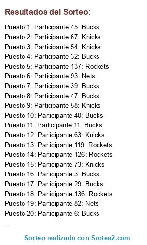 - Puesto 30: Participante 70: Knicks