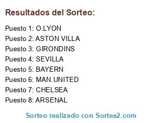 Lista de participantes: O.LYON, ARSENAL, CHELSEA, SEVILLA, MAN.UNITED, ASTON VILLA, BAYERN, GIRONDINS.
