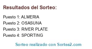 Lista de participantes: ALMERIA, OSASUNA, RIVER PLATE, SPORTING.