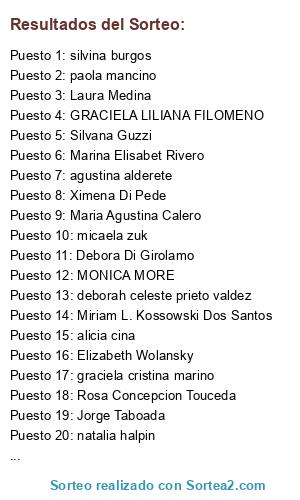 Lista de participantes: Ana Morena Montes, Martin Manuel, Cecilia Leoni, Rosana Laura Pizzorni, Celia Trezzini, Yesica Sbl, Laly Rollero, Mariana Daniela Rattner, Silvia Cardozo, Graciela Vazquez, Rosmiguelys Martinez, Silvia Fernandez, Miguel Angel Martin, Elida Chene, Myriam Urey, Marcia Soledad Iguinis, Yesica Zeitune, Roxana Benveniste, Franco Segale, Maru Dan, Graciela Dipasquale, Malvina Soledad, Marce Denis, Nicolas Ramallo, Nestor Davila, Lorena Ramirez, Iris Del Pilar, Graciela C de Fernandez, Nelida Estela Chavez, Carina Cespedes, Claudia Fer, Carla Denise Nigro Hassan, Axel Fernando Farolito, Mau Ricio, Alejandro Gustavo Pereira, Ana Maria Ramallo, Mirtha Logarzo, Aldana Vera, Luciana Manzo, Carmen Olivera, Romina Rebai, Ana Boaventura, Pablo Daniel Rosso, Yakue Lmj, Carmen Chamorro, Mariel Scquizzato, Alfredo Eduardo Juarez, Guido Failchijes, Carina Zabala, Juan José Suárez Nielsen, Veronica Dubin, Cristina Moraga, Clau Alicia Mansilla, Alicia Coronado, Mariana Guerra, Marcela Garcia, Angel De Rde, Federico Peterson P, Sara Monzon, Angela Alanis, Delia Wagner, Ximena Di Pede, Daniel Castagno, Alejandro Ciliberto, Paula Gonzalez, Ale Diaz, Pablo Miñana, Clau Devesa, Bel Zaidman Wilkinson, Sara Figueroa, Mariel Laguilhon, Maria Peralta, El Rifa, Alicia Sposito, Analia Martinez, Rosana Di Vita, Sarita Arnedo, Flavia Collado, Stella Maris Ruggiero, Verónica Sierra, Guillermo Perez, Gisela Heidenreich, Claudio Wolff, Jona Muiño, Ana Luisa Di Benedetto, Mmaguii Cco, Yammi Dai, Alejandra Avila, Maria Agustina Calero, Camila Lujan, Ekkert Any, Ada Rossetti, Ceci Vatt, Yanina Culaitis, Mechi Argañaraz, Nelida Barrionuevo, Isabel Cardozo, Elizabeth Jimenez, Aldo de los Santos, Marlene Katheryn Pacheco, Gabi Peralta, Vanessa Sanchez, Maria Lopez, Cristina Gonzalez Richeri, Olga Bejaranos, Alberto Damian Tallarita, Carla Elizabeth, Marisa Biancone, Lorena Escobar, Roberto Raul Creado, Antonia Berardi, Gloria Fernandez, Martín López, Gabriel Lorenzana, Vilma Bertran, Alejandra Contino, Cintia Soraya Sariego, Alejandra Naccarato, Barbii Grasso, Gus Ferrazzo, Ignacio Ponce de León, Laura Caboni, Adabella Robotnik, Maria Del Carmen Turdera, Jorge Tischner, Anto Manfredi, Marcos Heraldo Rosembuj, Emanuel E. Muiño, Ale Pugliese, Bibiana Bustos, Eduardo Terzian Van Besten, Anita Torres, Monica Torres, Laura Seoane, Mvf Folgar, Monica Beatriz More, Ellarohana Lo Re, Miriko Dos Santos, Lily Szuldman, Ale Tab, Luna Bella, Silvana Lopez, Marcelo Ignacio Rey, Maricris Perez, Monica Collante, Lorena Trezzini, Vucic Antonio, Cari Luna, Natalia Falconi, Elida Molina, Amina Anais Esbir, Beatriz Gonzalez, María Emilia Fernández, Alicia Zanzi, Rafa Man, Laura Ali, Fabiana Ruiz, Ludmila Piedrabuena, Romina Quinteros, Mario Gomez, Elizabeth Boero, Veronica Figueira, Carito Fl, Pablo Fabrizio, Gato Maula, Miriam Akd Lombardini, Ivana Yfernando, Ricardo Ponce de Leon, Mario Prieto, Garcia Marcela, Di Pede, Ximena, mansilla claudia alicia, Bustos Bibiana, Gomez Mario, Lo Re Patricio, Antonela Virginia Manfredi, korpic silvana patricia, Di Vita Rosana Alejandra, Juarez Alfredo Eduardo, Albanese Rosaura, kossowski dos santos miriam lorena, Viviana Aguirre, Viviana Aguirre, Rosso Pablo, Mario Quilian, flores andrea carolina, veronica figueira, LEDESMA SILVIA ESTELA, cardozo silvia, ponce de leon nahuel, ponce de leon, ricardo, Guillermo Florencio, RATTNER MARIANA, DANIELA BALADRON, cardozo isabel, FLAVIA COLLADO, Gomez Lopez Eduardo Ramon, Anabela Albo, Manuela Rudnikas.
