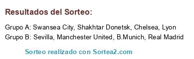 Lista de participantes: Shakhtar Donetsk, Manchester United, Sevilla, Swansea City, Real Madrid, Chelsea, B.Munich, Lyon.