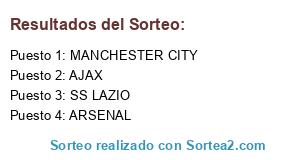Lista de participantes: AJAX, ARSENAL, SS LAZIO, MANCHESTER CITY.