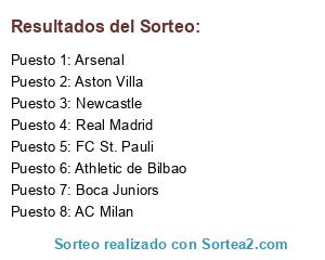 Lista de participantes: Athletic de Bilbao, FC St. Pauli, Boca Juniors, AC Milan, Arsenal, Real Madrid, Aston Villa, Newcastle.