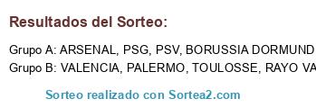 Lista de participantes: RAYO VALLECANO, BORUSSIA DORMUND, VALENCIA, PSG, PALERMO, ARSENAL, TOULOSSE, PSV.