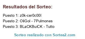 Lista de participantes: xA-RODx - kezOn, OliGol - 7Pulmones, rigo - Bravo, element-bubachuck, z0k-cer0c00l, @lboThebesT - Xunxothebest, dkl2-Fish, BLaCKBuiCK - Tutto, Weed - Camilo, sebas - skiline, Klaudiio - Rooney.