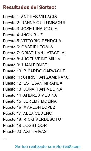 Resultados del sorteo:
