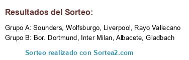 Lista de participantes: Gladbach, Bor. Dortmund, Rayo Vallecano, Albacete, Wolfsburgo, Inter Milan, Liverpool, Sounders.