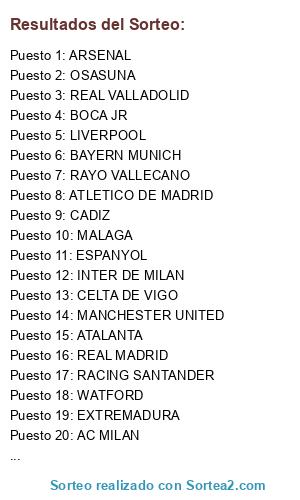 Resultados del sorteo: