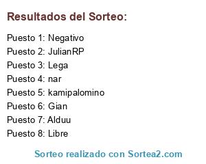 Lista de participantes: Alduu, Lega, kamipalomino, Gian, JulianRP, nar, Negativo, Libre.