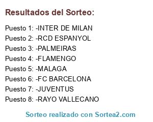 Lista de participantes: -FC BARCELONA, -RCD ESPANYOL, -JUVENTUS, -PALMEIRAS, -MALAGA, -RAYO VALLECANO, -INTER DE MILAN, -FLAMENGO.