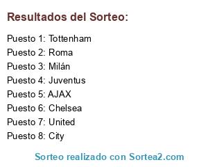 Lista de participantes: Arsenal, Borussia, Chelsea, Tottenham, Madrid, Boca, Atleti, Bayern.