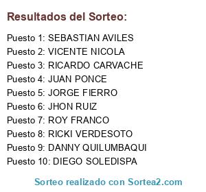 Lista de participantes: RICARDO CARVACHE, RICKI VERDESOTO, DANNY QUILUMBAQUI, JORGE FIERRO, JUAN PONCE, JHON RUIZ, VICENTE NICOLA, SEBASTIAN AVILES, DIEGO SOLEDISPA, ROY FRANCO.
