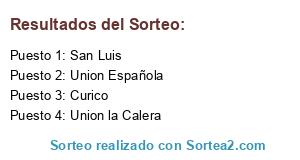 Lista de participantes: Curico, Union Española, San Luis, Union la Calera.