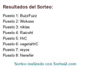 Lista de participantes: Raicoht, Nenefer, HrC, vegetaHrC, BuzzFuzz, Wokooo, reyox, niklas.