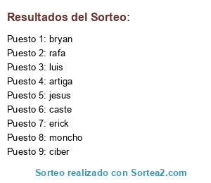 Lista de participantes: moncho, erick, luis, caste, bryan, rafa, jesus, artiga, ciber.