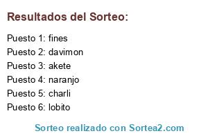 Lista de participantes: lobito, akete, naranjo, nacho, valrojo, fines, charli, davimon.