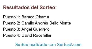 Lista de participantes: Camilo Andrés Bello Monte, Teofilo Gutierrez, Juan Manuel Santos, Baraco Obama, Vladimir Putin, David Rocefeller, Manuel Sallé, Lionel Messi, Andrés Guillermo Castro, Felipe Guillermo Castro, Cristiano Ronaldo, José Ernesto Pekerman, Manuel José dé Tekendama, Ángel Guerrero, José Romulo Castillo.